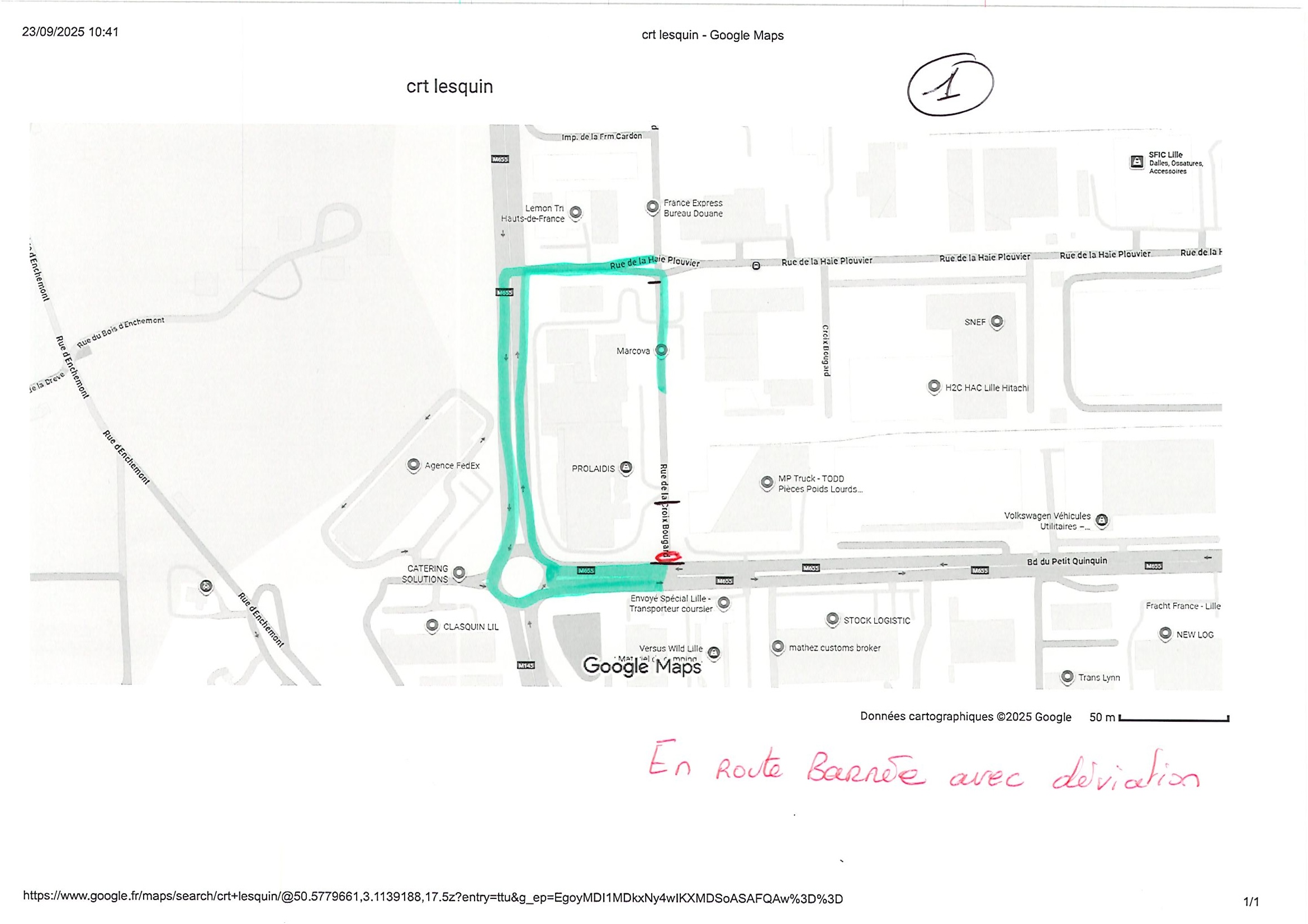 Déviation : Bd Petit Quinquin → Bd Bois d’Enchemont → Rue de la Haie Plouvier