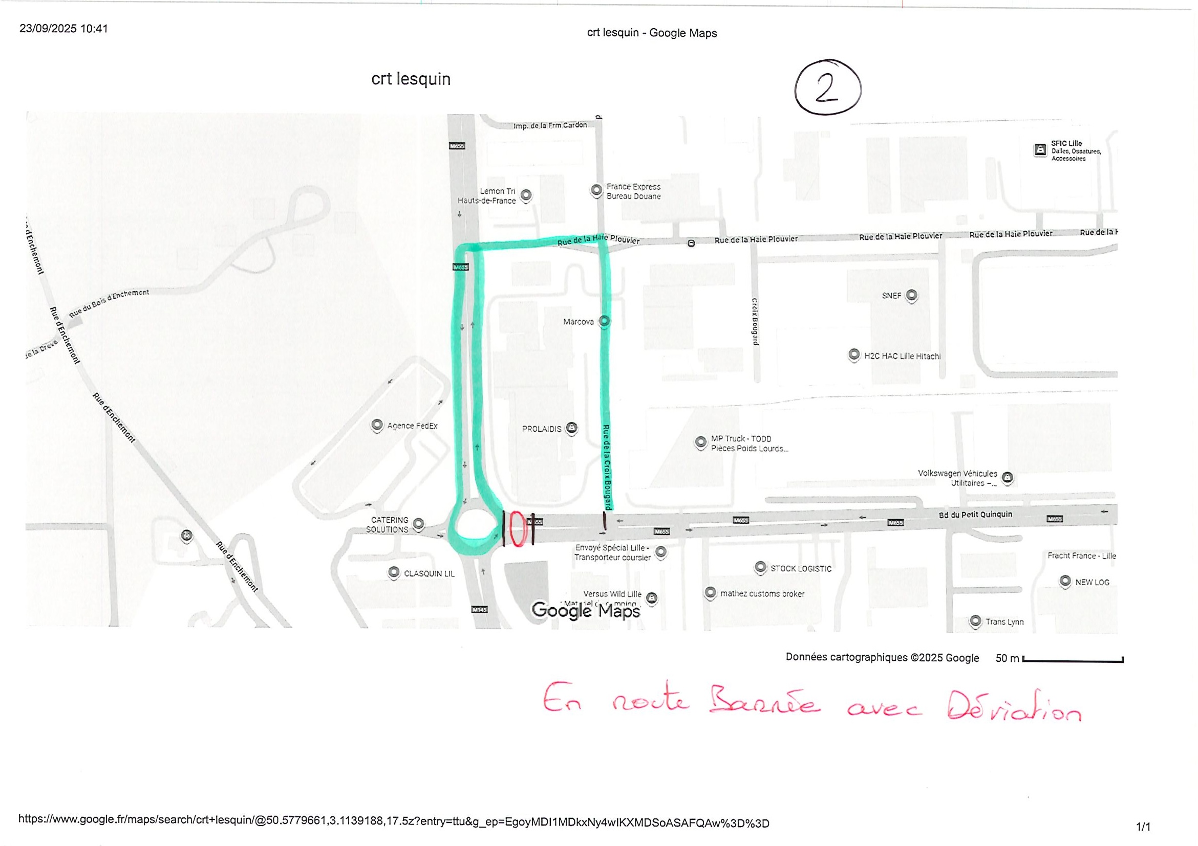 Déviation : Rue de la Haie Plouvier → Rue de la Croix Bougard → Bd Petit Quinquin